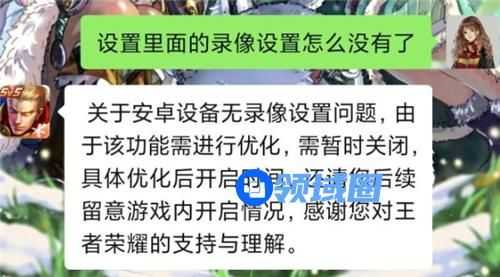 首先根据官方的回答来看,安卓设备的录像功能需要优化,所以暂时就关闭掉了。如果你想录制王者时刻这种精彩视频的话,在每局对战的结算界面,点击右下角的【视频战报】,就可以查看本局的精彩时刻了。