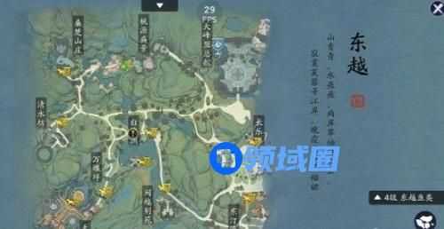 这个位置其实很好找的哦,就是玩家直接来到这个东越,然后在左边可以看到桃源盛景,直接来到这个传送点位置。