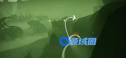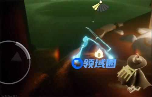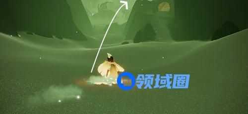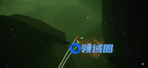 然后玩家往这个右边飞行,一直往上飞,飞到比较高的地方,往下看,玩家可以看到一个火篝,就是这个烤螃蟹的位置,然后在这里就可以看到这个黑金斗篷先祖了。