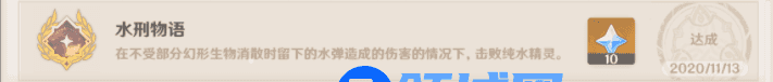 水刑物语的完成条件为:在不受部分幻形生物消散时留下的水弹造成的伤害的情况下,击败纯水精灵。