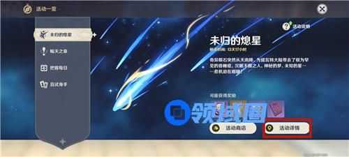 首先冒险等阶达到20级后,会在活动面板上看到一个名为【未归的熄星】活动,点击【活动详细】按钮。
