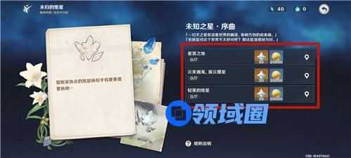 然后再回去参加【未知之星】的活动玩法,里面要我们收集三个区域的星陨碎片,每个区域有7个碎片可以收集。这些碎片就是陨星星骸,找到18个碎片的位置就能完成该任务。