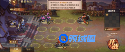 2、站位布阵上我将弓手放在后面。前排让袁术和步兵主将处在一排即可。