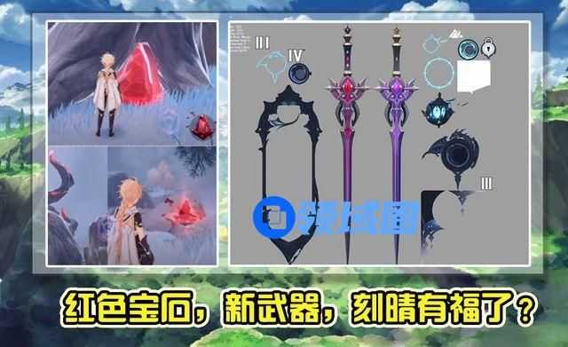 还有一种很大的红色石头,具体也不知道什么用,似乎是一种关键的道具。武器也有更新,内鬼透露的只有武器概念图,从图片里面看出来,应该有两种新的单手剑,暂时还不知道是五星还是四星。五星的可能性比较大,因为现在的两把五星单手剑都不是很强,这也导致刻晴等单手剑角色的强度受到影响,如果新版本出的单手剑是暴击或者爆伤词缀,那刻晴玩家就有福了。