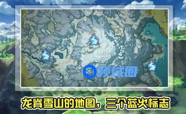 这张图应该是龙脊雪山的版本活动,但是具体内容还不清楚,从图片来看,应该也是分步解锁宝箱奖励。最后就是龙脊雪山的地图,就是下图,我们可以看出,龙脊雪山的地图并不是很大,但是其中也有不少看似关卡的地形,还有三个非常显眼的蓝色火焰标志,目前还不清楚有什么用,很可能是与某种玩法有关系。