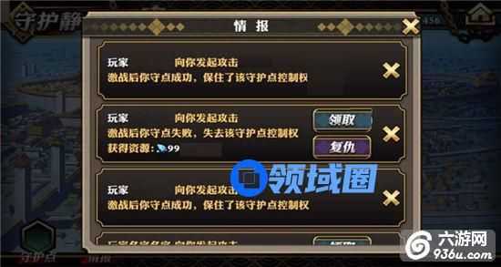 3个区域所产出的资源的比率不同,瀞灵廷核心的产出比率最高其次是瀞灵廷中部再次是瀞灵廷外围。当你上线之后如果你点击情报界面可以查看相应战况并且领取资源或者复仇。