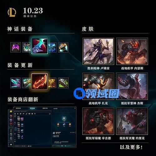【神话装备】是全新且最高的装备品阶,将成为你出装的基石,并拥有能够明确你每局玩法风格的强大特效。你同一时间只能持有一件【神话装备】,因此挑选哪件【神话装备】(和它提供的特效)要基于你的对手和游戏局势。你的【神话装备】还会设置你剩余出装的基调,因为它除了能够影响你想买的其它装备之外,它的【神话被动】还会在你购买其它成装(目前叫做【传说装备】时提供额外属性。【神话装备】现在基本上都具备最复杂的特效并且会强烈地影响你的玩法。