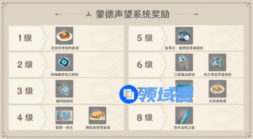 当声望等级提升之后就可以解锁声望小道具图纸、特殊城市功能、名片、领取食谱、风之翼等奖励。