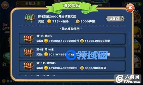 竞技排名越高,排名奖励越丰厚。竞技场每天22点结算,前10名玩家进入战神谱,能获得丰厚奖励。