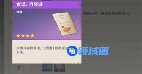 首先月亮派食谱属于【蒙德声望7级】解锁的奖励,声望七级奖励还包括【蒙德·祝愿】这个名片纹饰。
