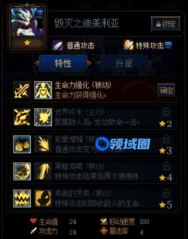 毁灭之迪美利亚建议作为前排辅助,吸收伤害。这一张卡牌可以作为牺牲型卡牌,加点可以随意选择。