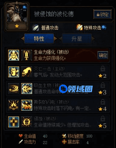 被侵蚀的波伦德是除了罗特斯的唯一有机体卡,以前排肉坦的形式作为加点推荐,3星的吸血搭配有机体的吸血效果,前期对手很难第一时间将其击杀,不过如果想要最大化的利用这一张卡牌进行输出,五星的加点可以选择侵蚀,每秒掉1%的血,但是可以增加30%的攻击力,搭配有机体的吸血效果,可以忽略这一个负面状态。
