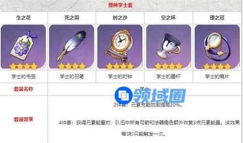 4件套:获得元素能量时,队伍中所有弓箭和法器角色额外恢复3点元素能量。该效果每3秒只能触发一次。