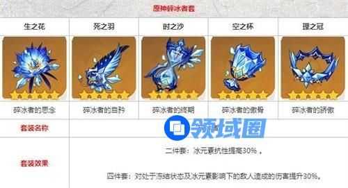 4件套:对处于冻结状态及冰元素影响下的敌人造成的伤害提升30%。
