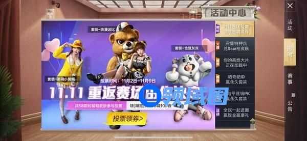 和平精英11月2日开启了一年一度返场皮肤投票,排名靠前的皮肤套装会在11.11双十一返场售卖,那么和平精英返场皮肤投票入口2020在哪里?游戏宝小编为您带来2020和平精英返场皮肤投票入口。