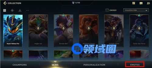 来到collection界面后,点击底栏第四个选项【EMOTES】,获得的表情就是在这里佩戴的。
