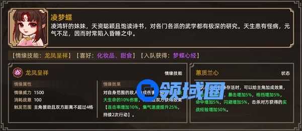 以上就是为大家带来的大侠立志传凌梦蝶结缘攻略,希望对大家有所帮助。更多精彩内容,敬请继续关注领域圈。