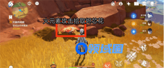 5、接着,利用你的火元素技能攻击这些花苞,让它们绽放出美丽的花朵,然后从其中收集3个烬芯花。