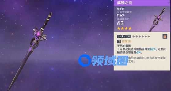 1、腐殖之剑是一把4星的单手剑,使用后可以提升玩家的元素战技伤害。