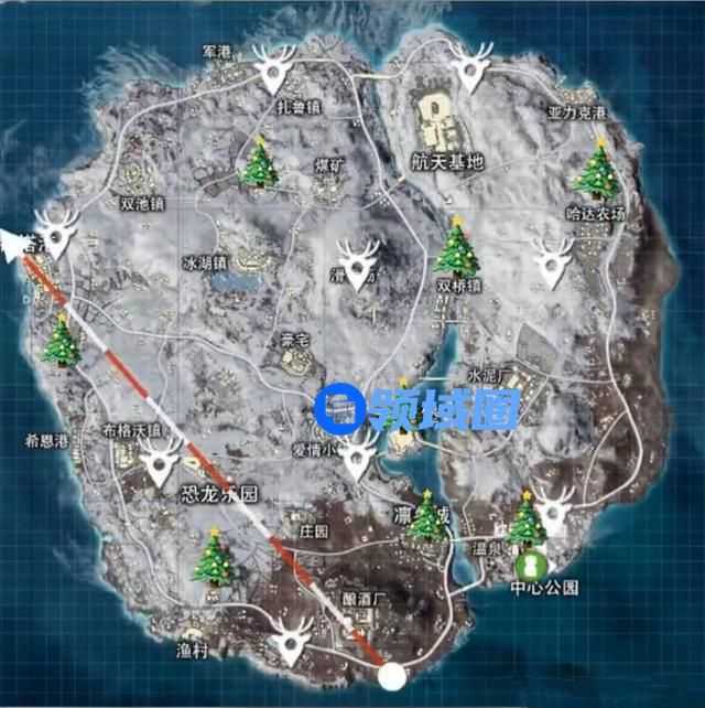 相较于海岛地图而言,由于雪地地图的树木较多,加上房屋密集,找起圣诞树更是困难,但是这些都不是问题,小龙在上图中已经将具体的位置标注出来了,大家只需要按着这些地图上的位置,就可以准确找到圣诞树。