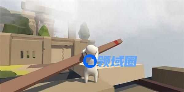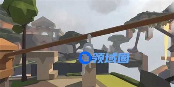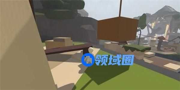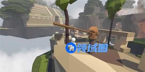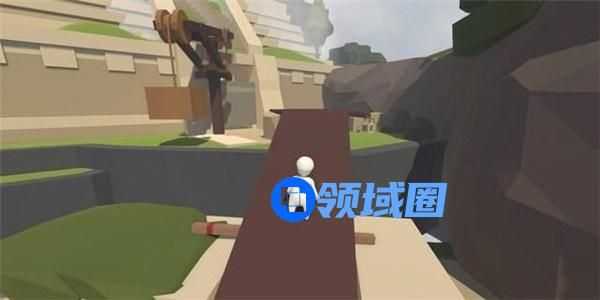 先将身边的木块放到跷跷板一侧,向被抬起的另一侧冲刺跳跃后抓住对面高台上的木板,可将木板拉下来。