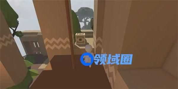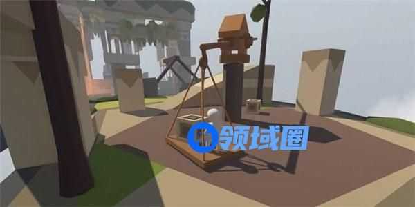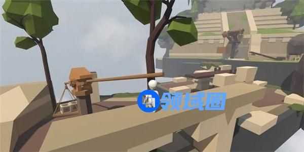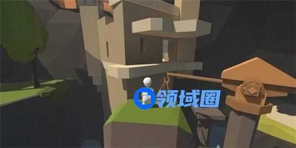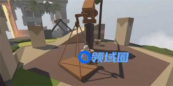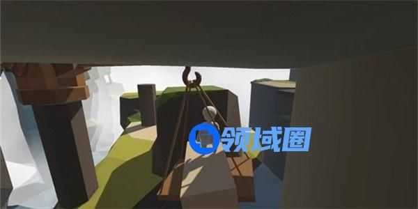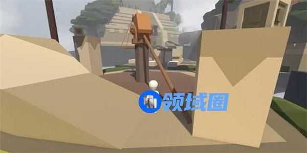 跳下吊块,可以发现一个木块的重量不足以使机关门开启足够通行的空间,接下来的常规做法是按照以上的方法再往吊块上拖放一根木桩,但是此操作难度非常大,木桩非常容易从木板上滚落。
