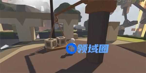 此场景内有一个可旋转的杠杆-吊板机关,和放置于高处的两个木块。