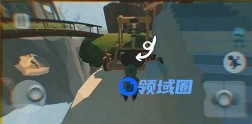 河沟对面有一个城堡,这一侧有个投石机,站在投石机侧面旋转罗盘可以将投石机装弹位置降下来。跳上投石机,用右手把投石机扳机向上拉一下后迅速松手,然后bob落入城堡。