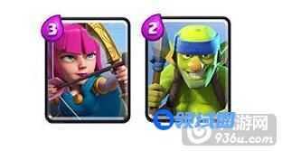弓箭手在最近的调整之后,取代了许多卡组中哥布林投矛手的地位,因为快速的射箭能力加上丰富的血量,在部队对拼的情况下弓箭手更有优势。但是对于防御塔的消耗这件事上,还是哥布林投矛手更占优势,2费在对面不管的情况下可以稳定打掉对手防御塔200多的血量!
