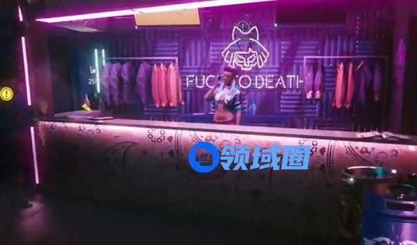 在一个花哨的后街夜总会中体验,感受到超梦体验闻名的夜总会,各个衣帽间上用粉色的霓虹灯上面会写着“XXXX TO DEATH",这就是夜之城所享的乐主义和消费主义的真实场景。