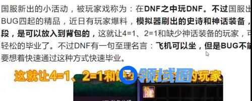 这几天某些自媒体又在网传DNF模拟机可以复制装备的BUG,诸如快速毕业之类。