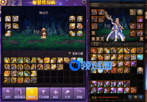 利用遮盖原理,就可以另类的“穿上”智慧模拟机里的装备,用于装杯之用,不过需要注意的是,智慧模拟机里的图标并没有光效,所以谨慎装杯,特别是别搞神话装备,不然脸都要打肿。