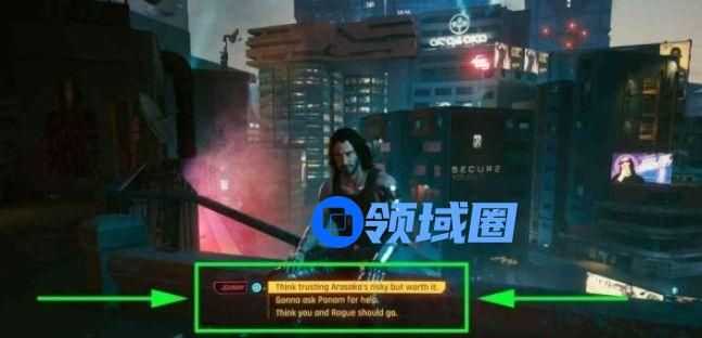 在最终任务【夜曲OP.55 N.1】中,米丝蒂(老维的女朋友)会带你去露台,然后你会与【强尼·银手】交谈,在这里的对话选项中选择打给【帕南】,然后选择需要一点时间,有些事情今天必须要做,然后向【帕南】寻求帮助,并服用【欧米茄阻断剂】。