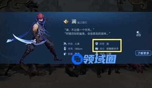 另外游戏中澜的阵营介绍也是特点,他的标签中阵营竟然变成了吴国,而身份则是标注着前魏都杀手,所以CG动画中深陷绝境的澜,应该是被吴国阵营搭救了,保护了自己心爱的人,也脱离了曹操和魏营的控制,澜真正的成为了自由的人,不会再去体验那种永恒的孤独了。