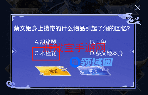 蔡文姬身上携带的什么物品引起了澜的回忆?这是探寻澜之羁绊中的题目,答案选项有A.胡笳花、B.玉玺、C.木槿花、D.蔡文姬本身,游戏宝小编为您带来正确答案。