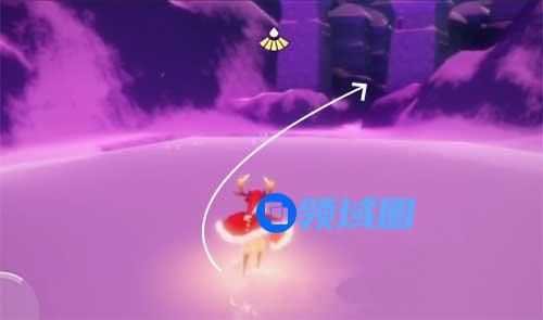 在向导的左边前面,可以看到这个紫色的石柱门,然后玩家来到这个地方。(就是玩家进入梦想季的通道的入口)