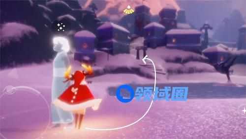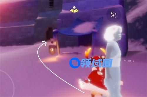 同样是以向导作为参考物,然后玩家可以在这个有灯笼的小棚子的右边,然后玩家往前走,进入这个房子的后面,就可以看到先祖了。