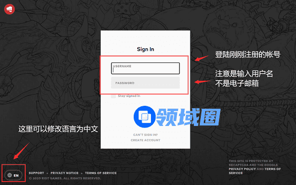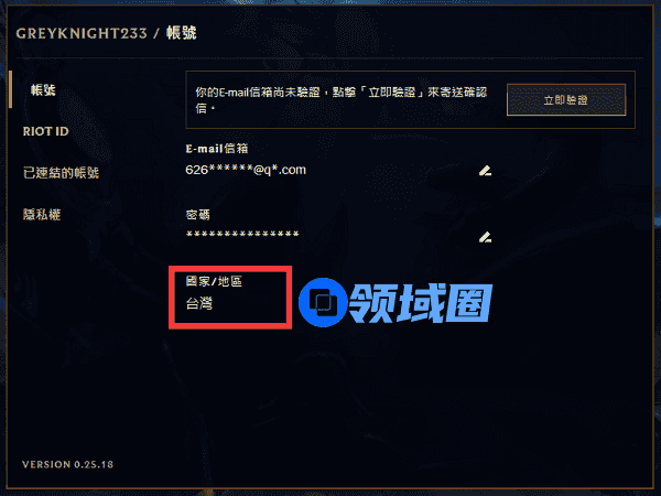 注册完帐号后,我们还需要验证一下帐号的注册地区是否是在台服服务器。打开网页:account.riotgames.com/account,然后登陆我们刚刚注册的帐号。