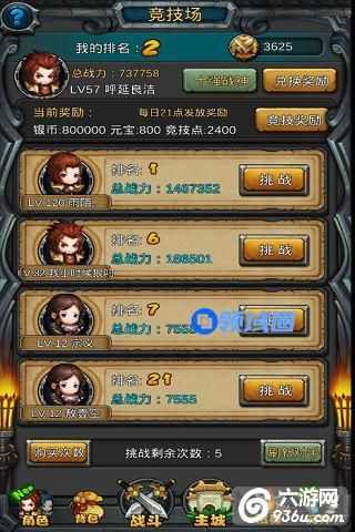 奖励:元宝、银币、竞技点(可在竞技场兑换各种稀缺道具)