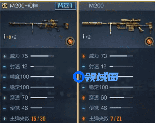 2、通过对比,可以看出,这款相较于M200,增加了伤害,载弹量还有穿透能力;