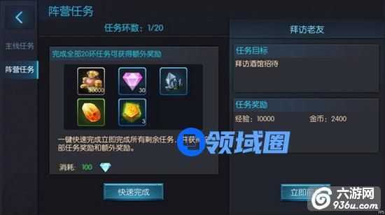 玩家可以消耗钻石来快速完成剩余的任务,消耗的钻石数量跟剩余的任务环数有关。快速完成后可以直接领取额外奖励。