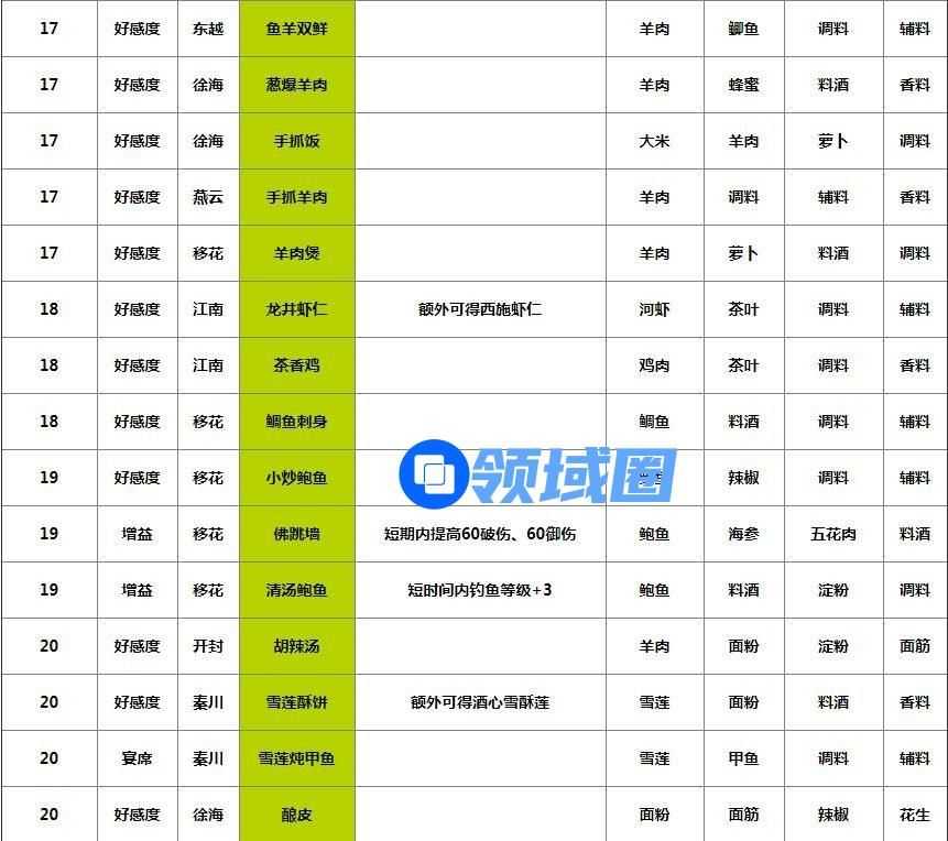 5、大葱烧海参:海参、辅料、料酒、调料。效果:短时间内提升8点破伤,4点御伤属性。