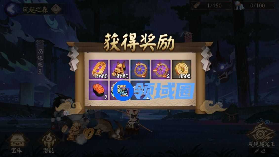 这次超鬼王由新式神(SP山风)代替阴阳师出阵。这有些像过往爬塔,有技能点(潜能)设置。