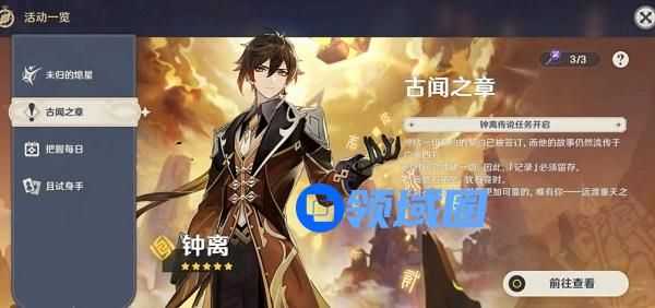 旅行者达到对应的冒险等阶,且完成相应的前置任务后,可使用「传说钥匙」解锁钟离的传说任务「古闻之章」。