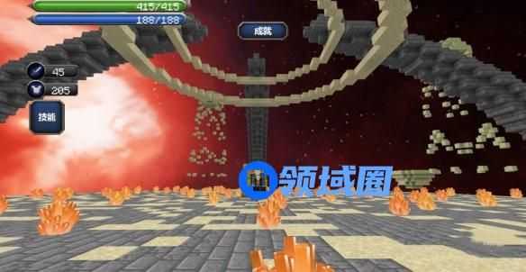 魔王进入二阶段后会变身为双翼恶魔形态,从地面上召唤出金色的能量柱攻击主角。