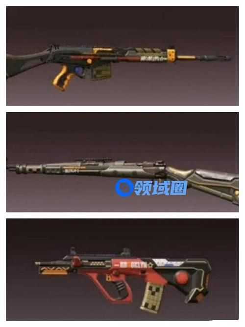 黑牛枪械,枪械皮肤一共有三款,分别是98kar,AUG以及SLR射手步枪。其中98k皮肤为升级款皮肤。