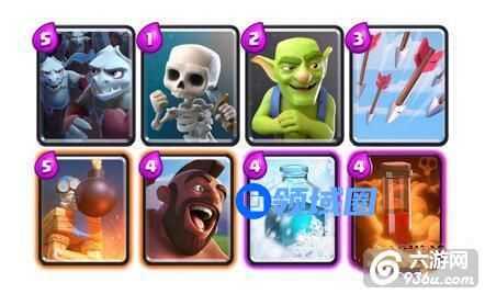 骷髅兵与哥布林的属性类似,都是用来定住对手的大怪或单体冲锋怪,而且过牌效果良好,哥布林偶尔还能磨一下对方防御塔的血量。