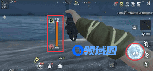 4、出现长条说明鱼上钩了,可以等长条满了,再拉鱼竿。