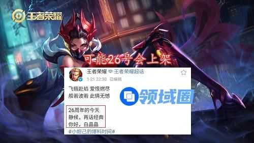 芈月这款联动皮肤,按照官方公布出来的字面意思和海报里面隐藏的内容来看,极大可能会在26号就进行上线,毕竟26号对应26周年的数字,况且26号还是在周二这天官方常驻更新时间段里面。