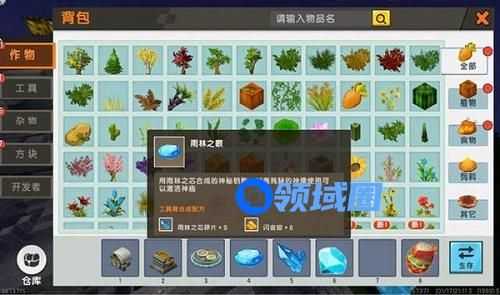 在雨林的树木里面,有雨林之芯乔木,在得到了数量足够的雨林之芯之后,玩家就可以合成雨林之芯碎片了。在拥有了足够多的碎片之后,就可以合成雨林之眼,补全残破的神像,开启大神庙了。